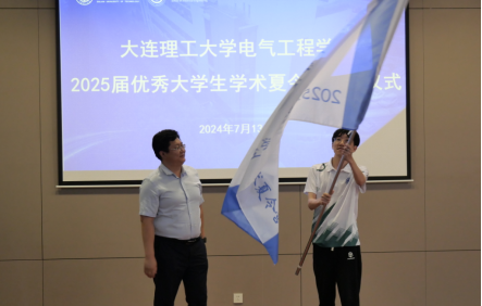 随后,学院党委书记张建生老师为欧美色情片 2025届优秀大学生夏令营授旗,大连理工大学齐世豪同学代表全体营员接受营旗,与会全体师生共同见证了授旗仪式。